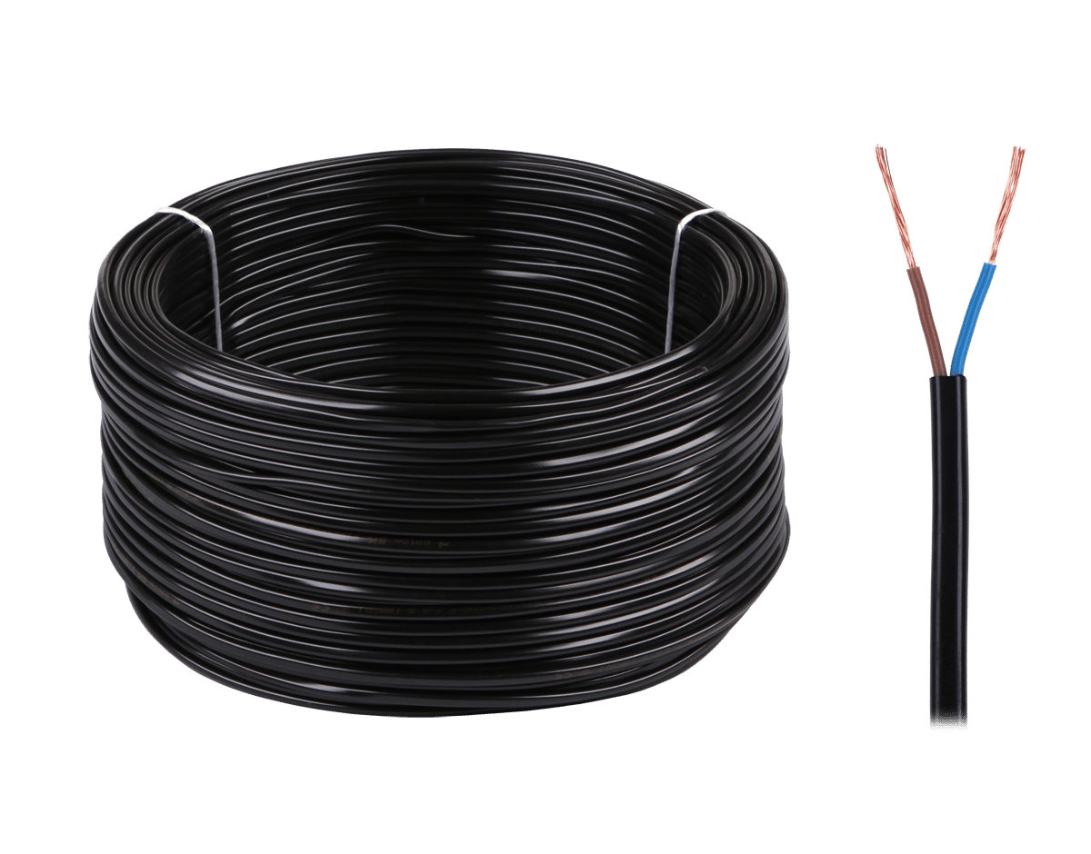 Deze stroomkabel kunt u voor een groot aantal doeleinden gebruiken. De kabel 2-aderig en heeft een lengte van 100 meter. De kabel is van het type H03VVH2-F, wat inhoudt dat de kabel is gemaakt volgens de standaard voor kabels met een spanning van 300 Volt, met PVC isolatie, PVC mantel en flexibele aders. De kabel is zwart en is bedoeld voor gebruik in droge ruimtes.
