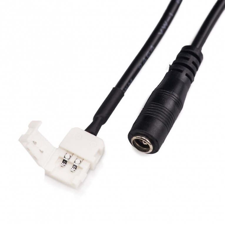 Met deze handige connector kabel sluit u uw mono LED strip eenvoudig aan op een adapter, om deze van stroom te voorzien. De connector klikt u gewoon dicht met de LED strip erin, en het andere uiteinde sluit u aan op de plug van uw voeding. Dit zorgt voor snelle en veilige montage.