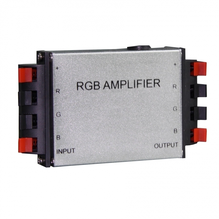 LED-versterker geschikt voor al onze LED strips, armaturen of andere armaturen. Met behulp van een versterker kunt u meerdere RGB strips aansluiten op één controller.In theorie zou u met deze versterker en slechts één controller onbeperkt aantal LED strips kunnen aansturen.