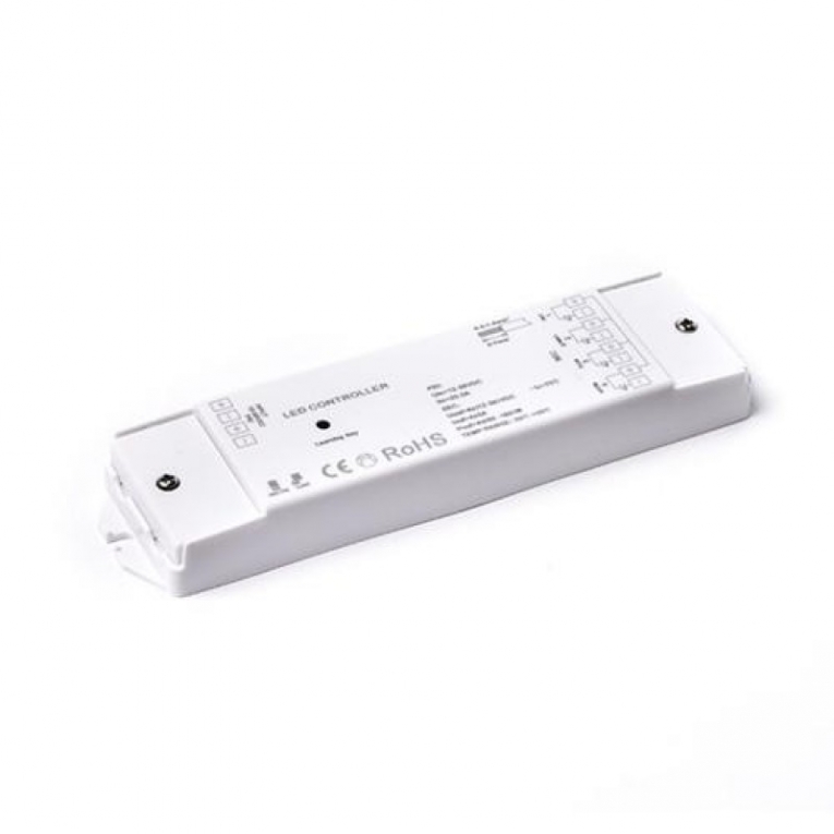 Deze controller voor LED strip communiceert draadloos met de wandimmer, inbouwdimmers en afstandsbediening d.m.v. een RF signaal.