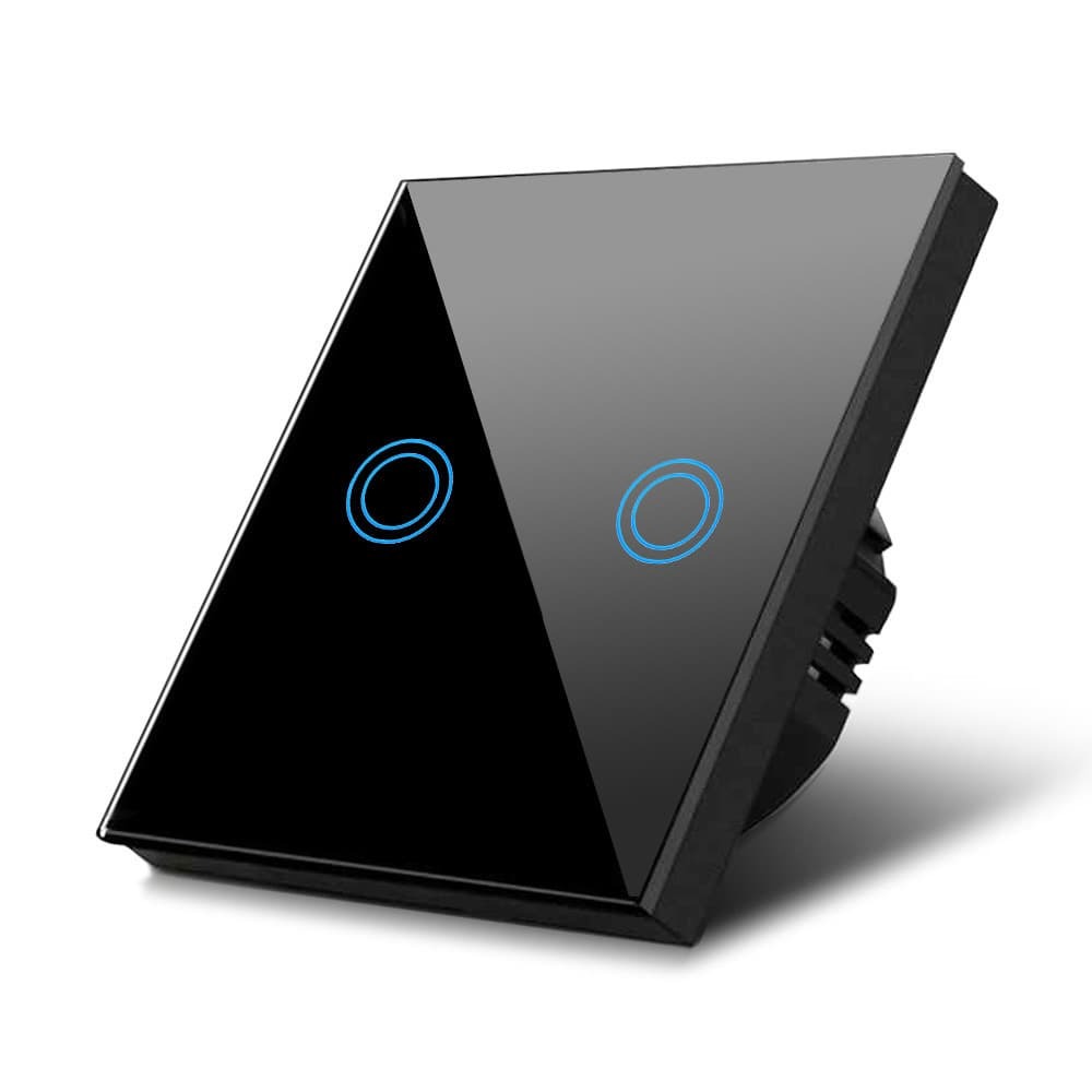 Met deze moderne wandschakelaar maakt u uw verlichting helemaal af. De schakelaar heeft 2 uitgangen en is dus tweevoudig. Bovendien is de schakelaar aanrakingsgevoelig, waardoor u de schakelaar met slechts uw vingertopje kunt bedienen. De schakelaar is daarnaast voorzien van handige verlichting, waardoor deze ook goed te vinden is in het donker. De schakelaar is zwart en heeft een afmeting van 86 x 86mm. De inbouwdiepte van de schakelaar is 33mm. De schakelaar is gemaakt van gehard glas, en is daardoor ook waterproof. Dit maakt de schakelaar ook prima bruikbaar op vochtigere plekken zoals uw keuken of badkamer.