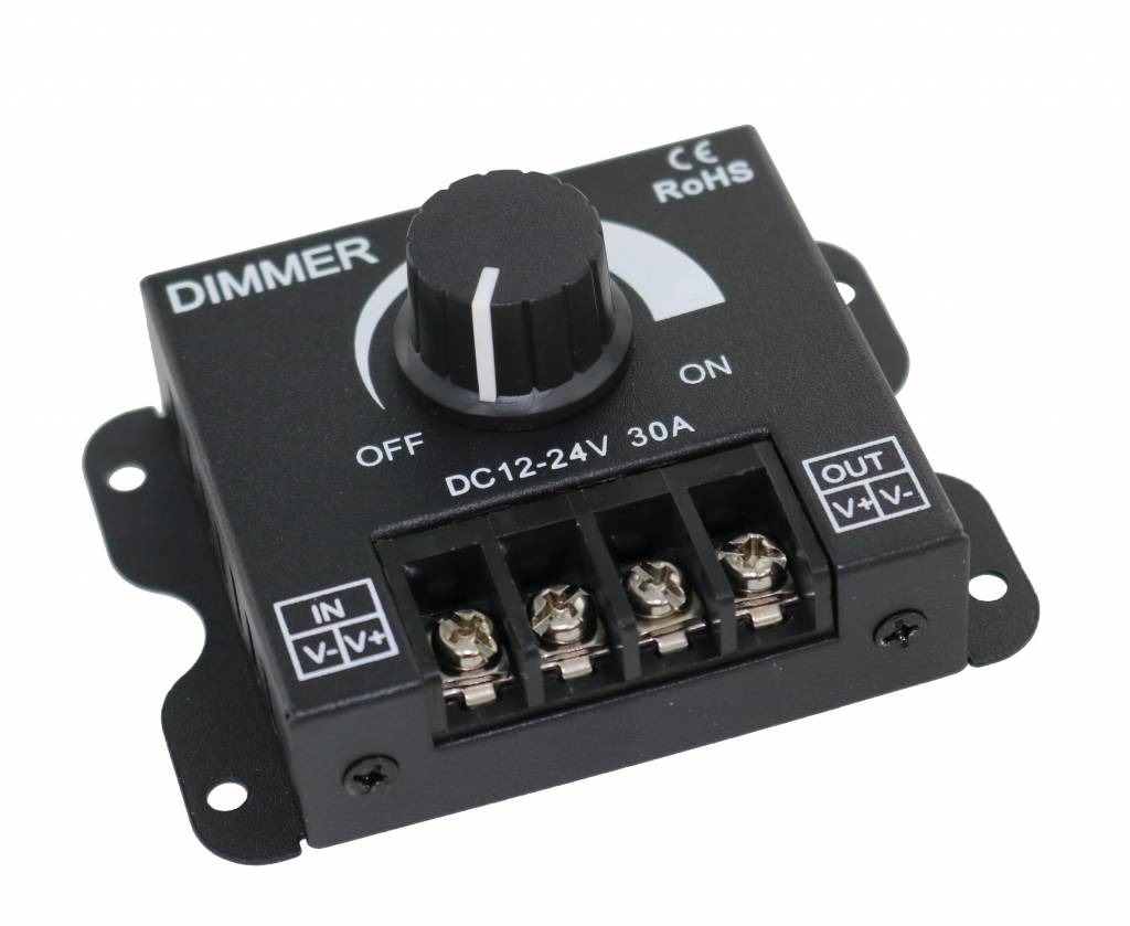 LED dimmer - Met draaiknop - 12 tot 24 Volt - 30A