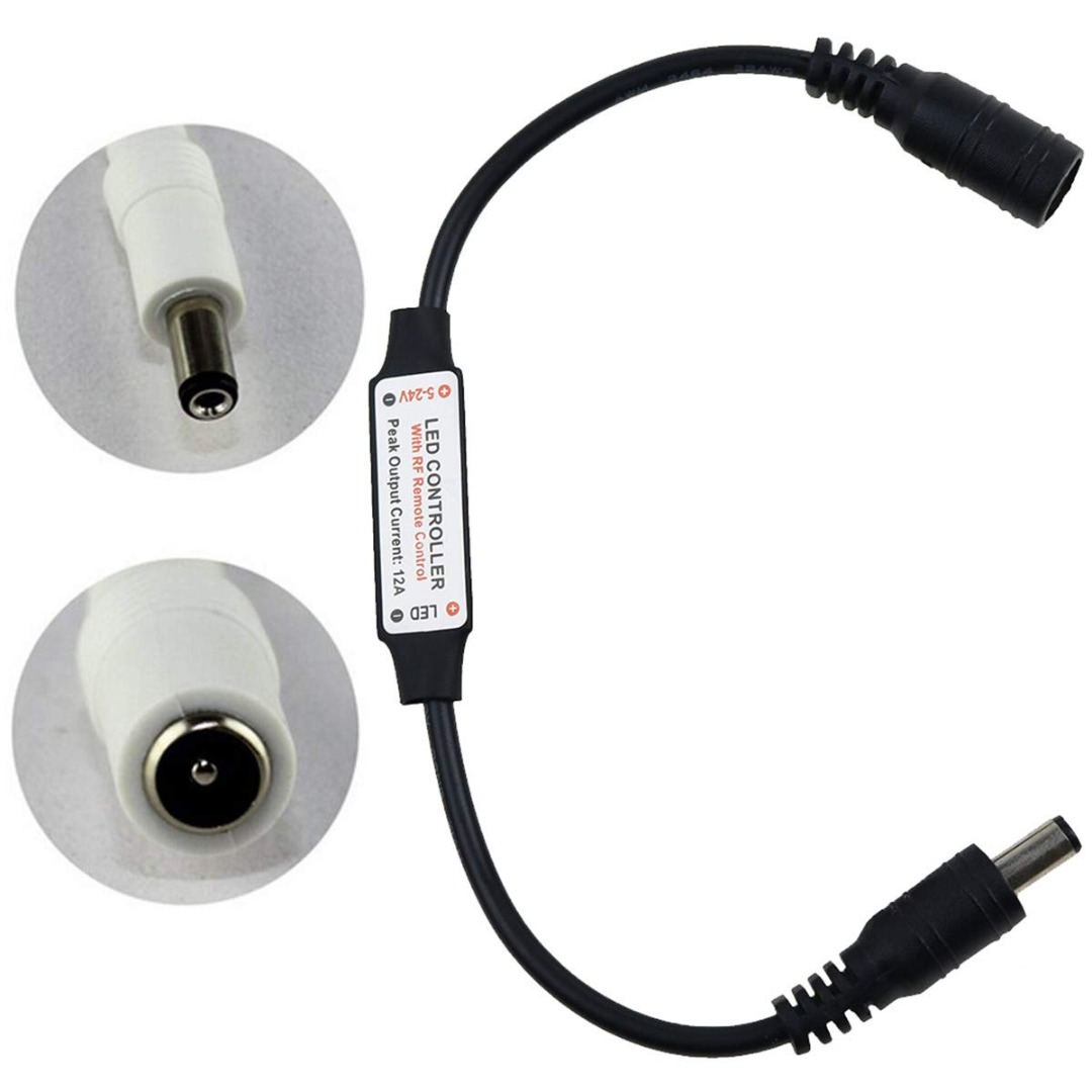 Deze RF dimmer voor LED verlichting wordt geleverd met een afstandsbediening. Hiermee kunt u de verlichting traploos en in stappen (100, 50 en 25%) dimmen, en zelfs een andere modus en snelheid kiezen. De dimmer werkt op 5 tot 24 Volt, met maximale stroom van 12A. De dimmer is geschikt voor éénkleurige (mono) LED strips. Deze strip werkt met een 2,1 x 5,5mm plug, waardoor deze eenvoudig kan worden aangesloten.