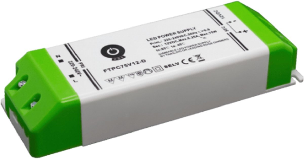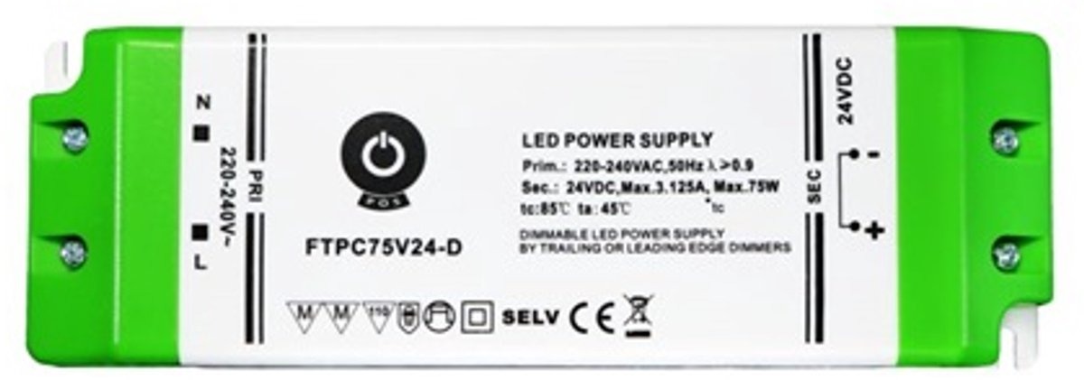 Ontworpen voor betrouwbare en efficiënte stroomvoorziening in diverse toepassingen. Deze voeding ondersteunt fase-afsnijdings dimmen (trailing edge), wat zorgt voor een vloeiende en geruisloze dim ervaring.