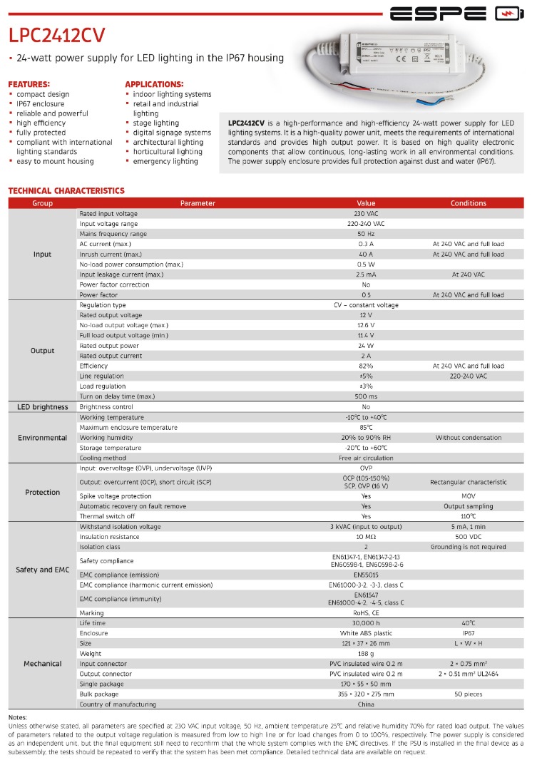 Alle drivers/voedingen van ESPE voldoen aan de internationale regels en standaarden welke de hoge kwaliteit waarborgen.