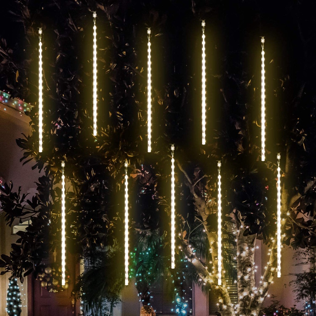 LED Meteoriet regenlichten kerst - 360 LED ijspegels,10 spiralen - 50 cm tubes - Warm Wit