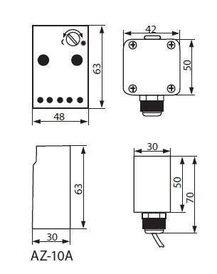 Afmetingen: Aansluitkastje: H63xB48xD30 mm / Sensor: H50xB42x30 mm