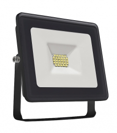 LED schijnwerper voor buiten met warm wit LED licht in een mooie zwarte afgeronde behuizing met wit middenvlak.