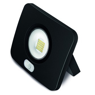 Mooie en strak uitziende zwarte LED schijnwerper van 10 Watt met hoge lichtopbrengst. Inclusief PIR sensor.