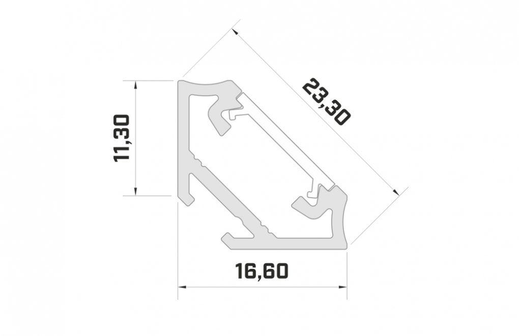 LED Profiel 23mm HOEK DESIGN C ZWART u-profiel kan geleverd worden met een lage of hoge opaal diffuser (zie afbeelding 4). De diffuser is eenvoudig te plaatsen vanaf de voorkant door deze op het profiel te klikken.