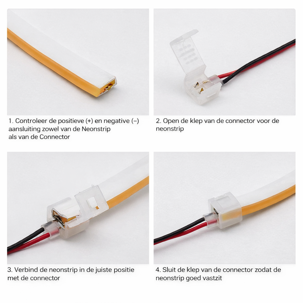 Controleer altijd de polariteit vóór het vastklikken van de neonstrip.