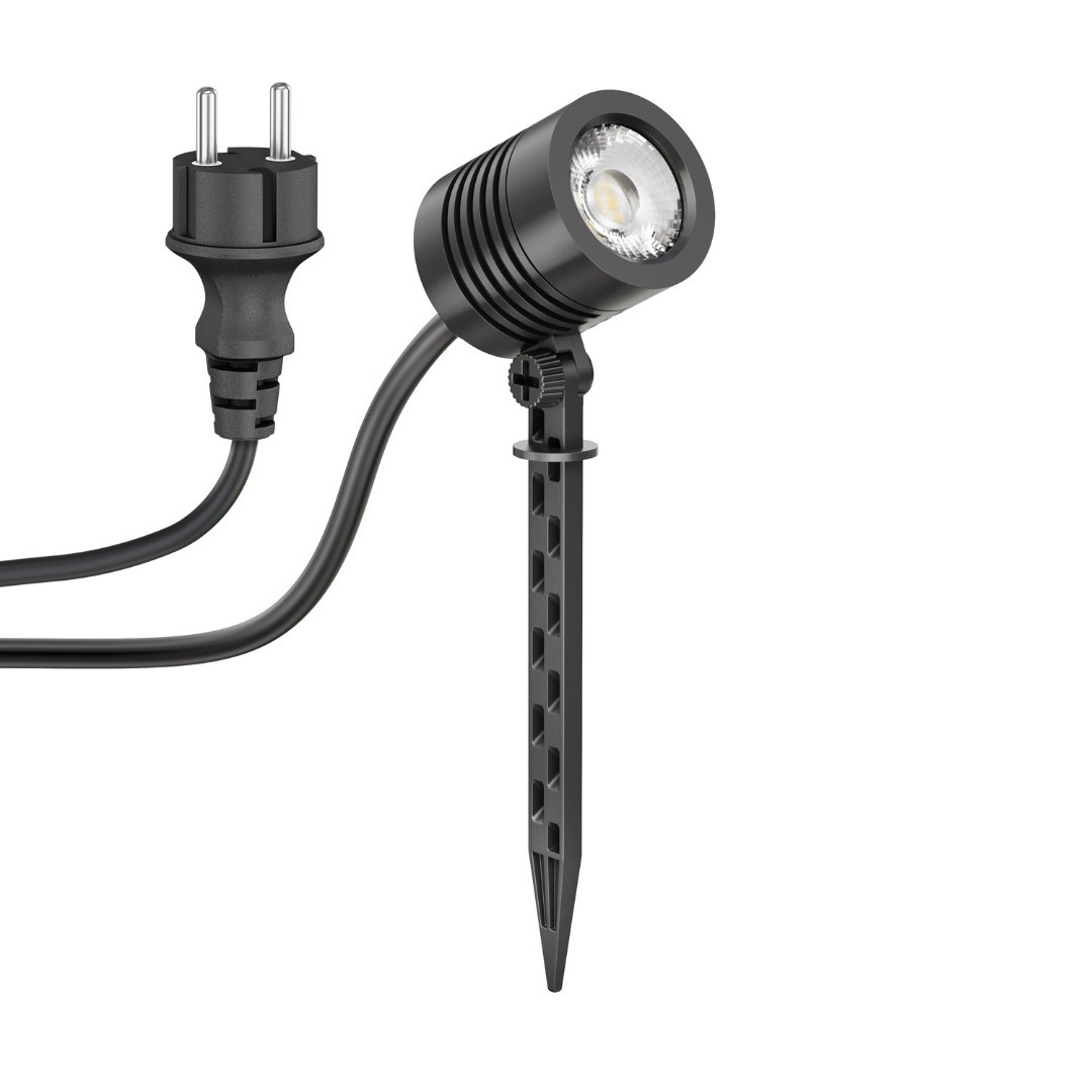Grondspot met aansluitkabel en stekker.