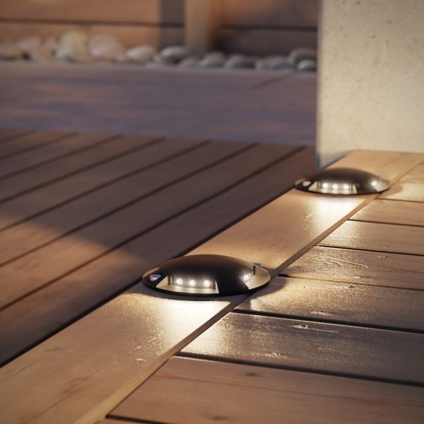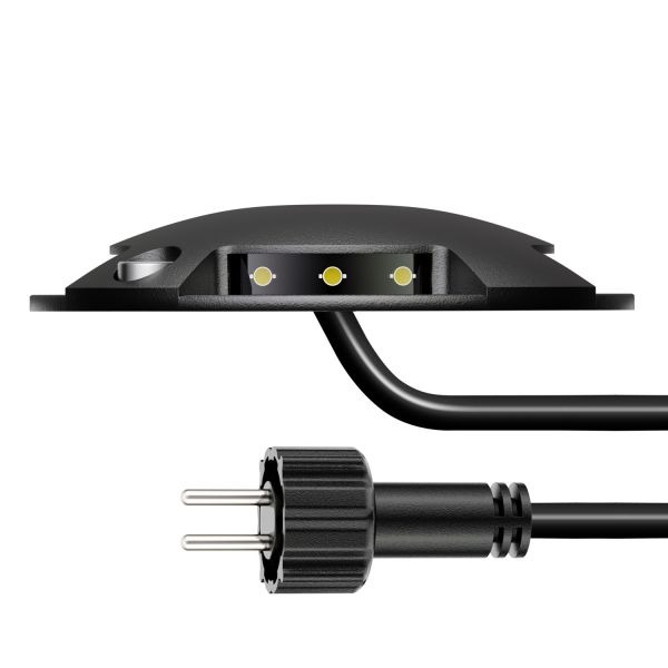 Deze compacte LED grondspot met vier lichtopeningen rondom is ideaal als markeer- of oriëntatieverlichting in de tuin, op een houten terras, in grindpaden of langs trappen. Dankzij het lage energieverbruik van slechts 1 Watt is deze spot zeer zuinig in gebruik. Het warm witte licht (3000K) zorgt voor een sfeervolle uitstraling zonder te verblinden. De spot is onderdeel van het NEMO plug-in systeem, waarmee je eenvoudig zelf een lichtinstallatie kunt samenstellen. Aansluiten gaat snel via een klikverbinding – zonder knippen of solderen. De stevige aluminium behuizing is voorzien van een zwarte poedercoating en is bestand tegen zwaar gebruik (tot 1000 kg belastbaar). Daarmee is deze grondspot ook geschikt voor opritten of looppaden. Dankzij beschermingsklasse IP67 is de spot volledig waterdicht en stofdicht.