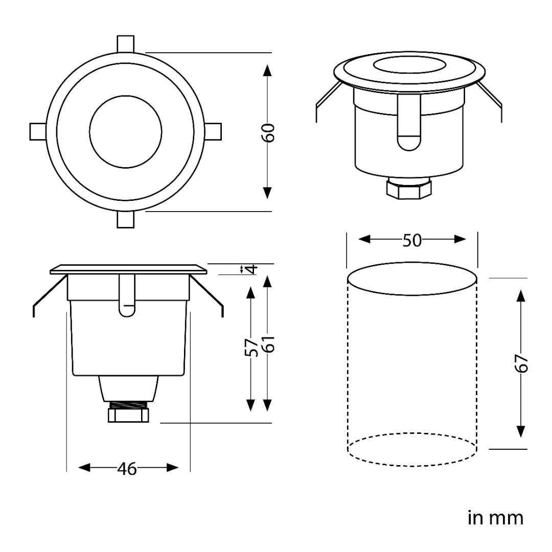 Deze LED terraslamp is uitermate geschikt voor inbouw in het terras. De lamp heeft namelijk een weerstandsklasse van IP65, wat inhoudt dat de inbouwlamp stof- en waterdicht is. De lamp werkt op 230 Volt en produceert aangenaam warm wit licht. Dankzij de kabel van 2 meter is het lampje zeer eenvoudig aan te sluiten. De stekker heeft een waterproof schroefbevestiging, waardoor het contact niet wordt blootgesteld aan water en vuil. Het lampje heeft een inbouwdiameter van 50 tot 55mm, en een inbouwdiepte van 67mm.