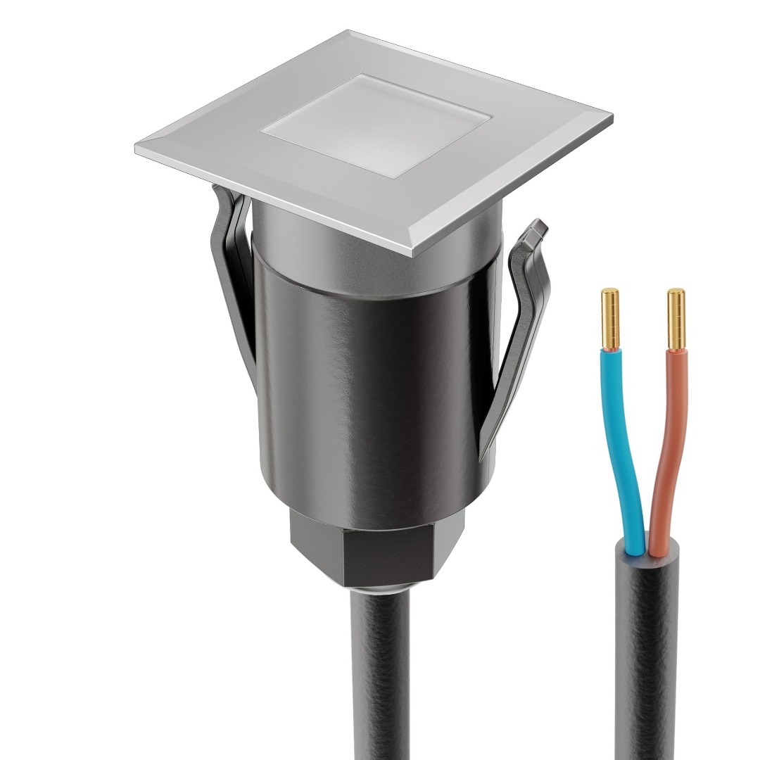 Deze LED inbouwlamp is uitermate geschikt voor inbouw in de vloer of de trap of het terras in de tuin. De lamp heeft namelijk een weerstandsklasse van IP65, wat inhoudt dat de inbouwlamp stof- en waterdicht is. De lamp werkt op 230 Volt en produceert aangenaam warm wit licht. Dankzij de kabel van 1 meter is het lampje zeer eenvoudig aan te sluiten. De stekker heeft een waterproof schroefbevestiging, waardoor het contact niet wordt blootgesteld aan water en vuil. Het lampje heeft een inbouwdiameter van 30 tot 32mm, en een inbouwdiepte van 62mm.