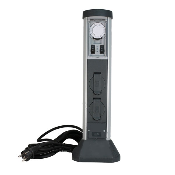 De tuin stekkerpaal heeft voor beide stopcontacten een Aan/Uit schakelaar + de keuze om in en uit te schakelen via de timer.