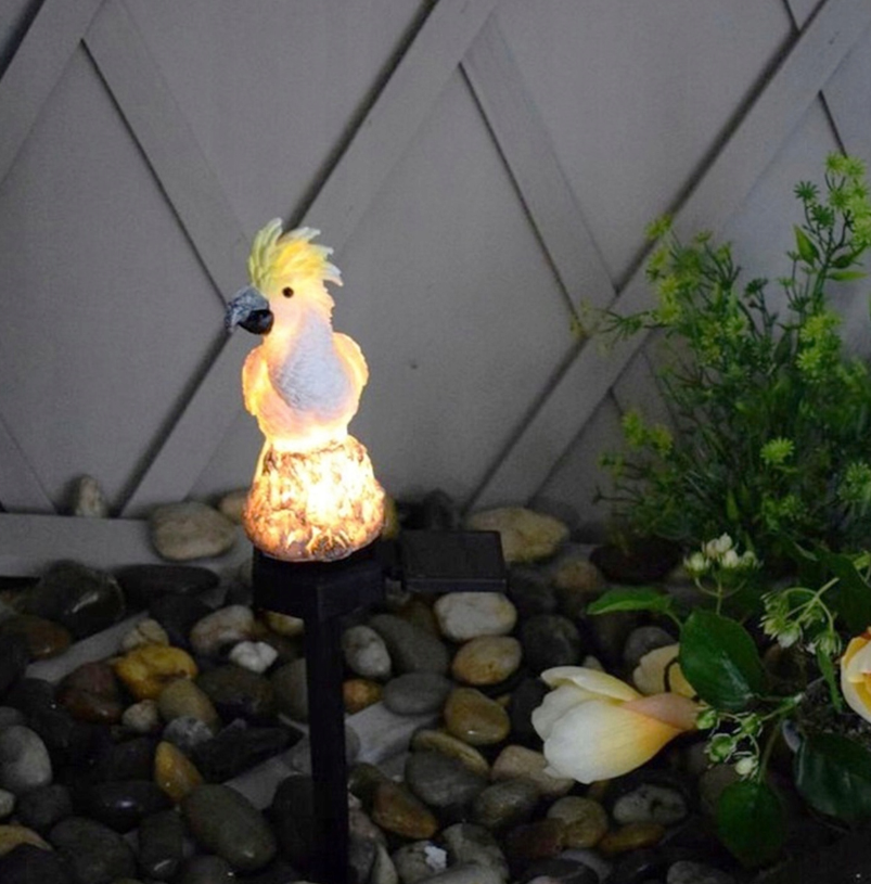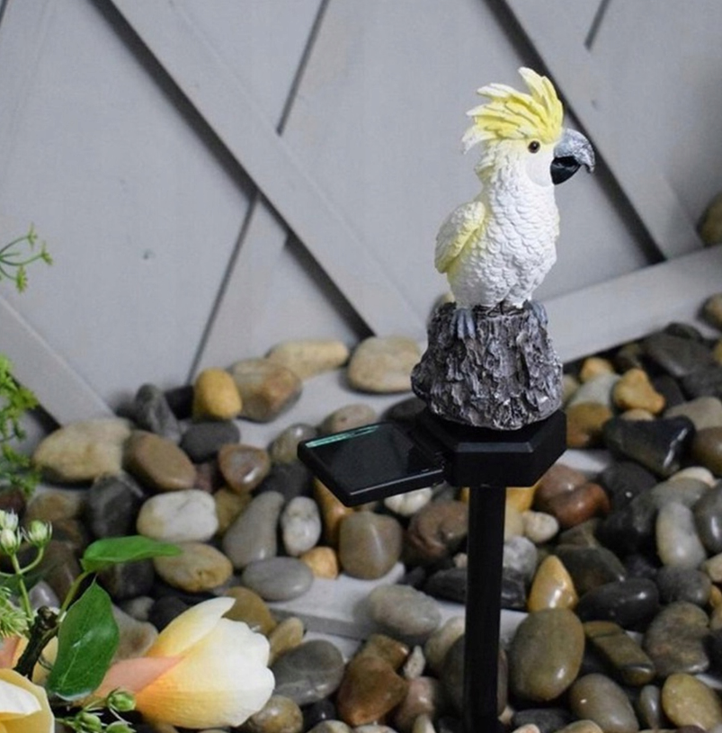 Dit bijzondere tuinlampje in de vorm van een kaketoetje kunt u prima gebruiken als decoratief element voor in de tuin. Het lampje wordt aangedreven door zonne-energie, en gaat automatisch branden dankzij de ingebouwde schemersensor. Het lampje produceert neutraal wit licht, waardoor het uiltje in het donker goed te zien is. Met een volle batterijlading brandt het lampje tot wel 8 uur lang achter elkaar. Daarnaast wordt het kaketoetje geleverd met een prikpen, zodat u deze ook in de grond kunt zetten. De lamp is waterdicht, dus u hoeft zich geen zorgen te maken als het een keer hard regent.