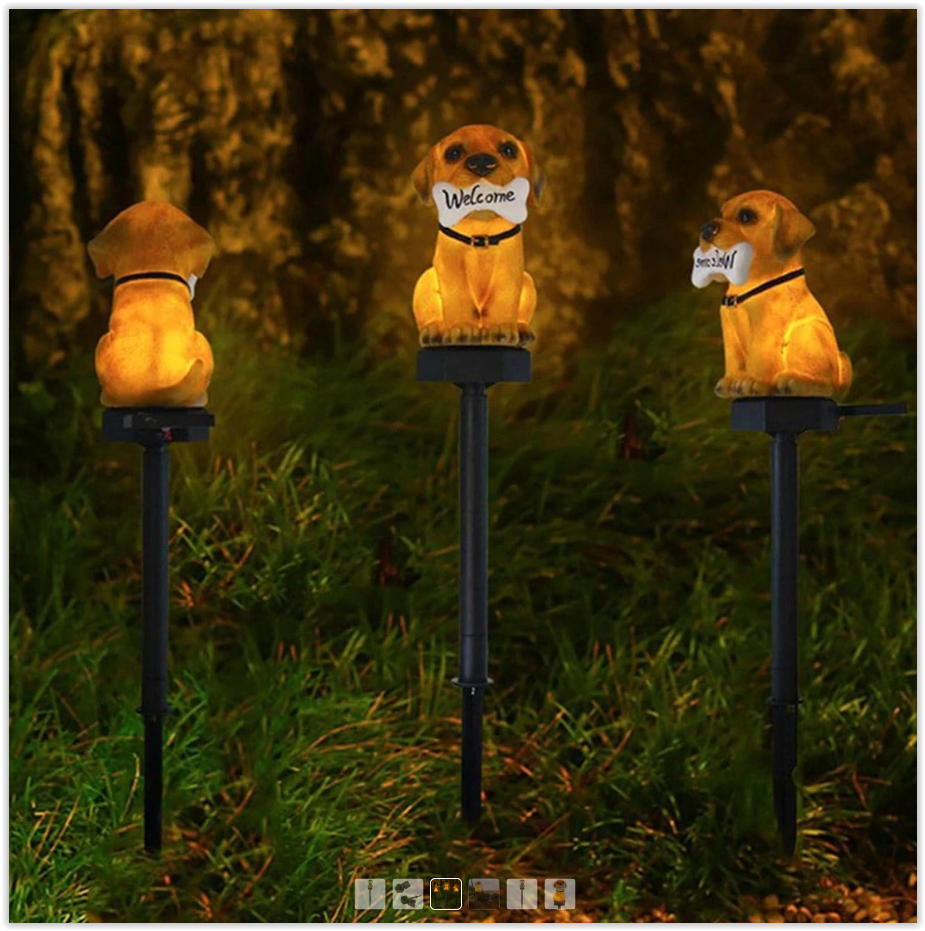 Decoratieve tuinverlichting in de vorm van een hondje.