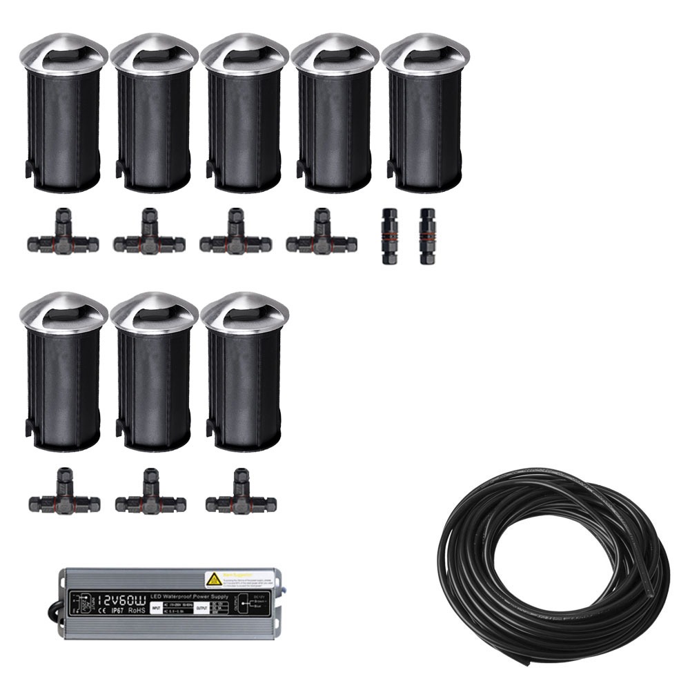 De set bevat 8 tuinpad spots waar u zelf het aantal meter kabel voor kiest in de opties hierboven.