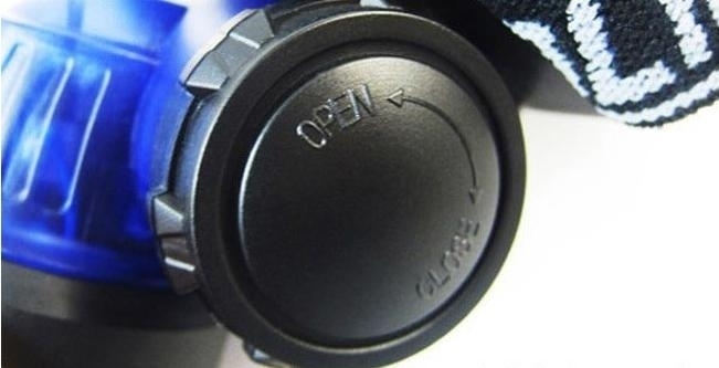 Mooie lichtgewicht hoofdlamp. Blauwe behuizing en zwart band. De band is in lengte verstelbaar en elastisch.