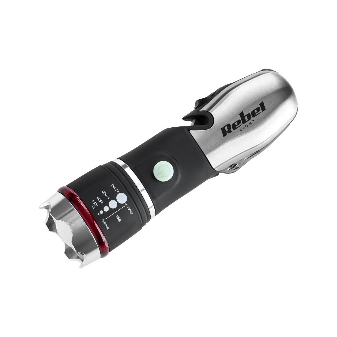 Deze zaklamp bestaat uit veel meer dan alleen een lichtje voor in het donker. Deze zaklamp is namelijk uitgerust met een multitool, gordelsnijder en veiligheidshamer. De zaklamp is lekker compact en toch uitgerust met een scala aan kleine gereedschappen, en werkt op 3 AAA-batterijen zodat u geen last heeft van draden. Deze worden niet standaard in de verpakking meegeleverd, maar kunnen wel eenvoudig meebesteld worden, indien u dat wenst. De zaklamp heeft een opbrengst van 120 Lumen, en een bereik van tot wel 80 meter! Daarnaast kunt u met de zoomfunctie eenvoudig de lichtbundel op een andere afstand laten focussen, zodat u altijd goed kunt zien in het donker. Perfect voor in allerlei omstandigheden dus, zoals kamperen of survivallen, maar ook tijdens verbouwingen of voor in uw werkplaats.