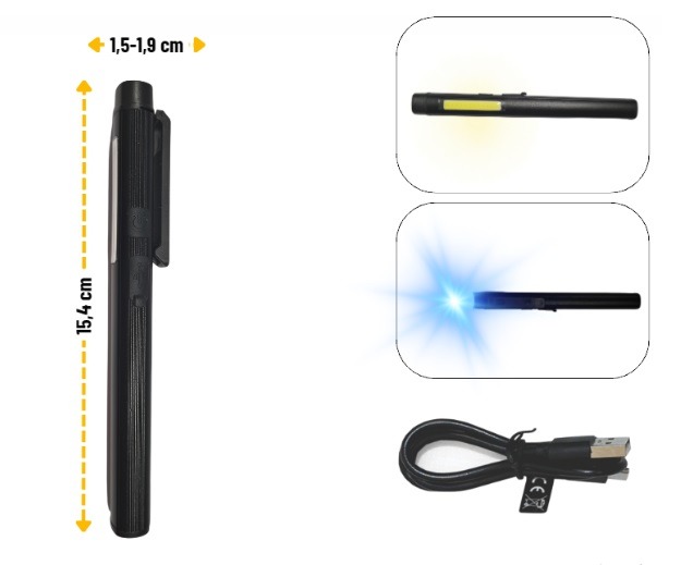 De lamp heeft een clip, zodat je deze kan opbergen als een pen. De clip is tevens magnetisch en draaibaar.