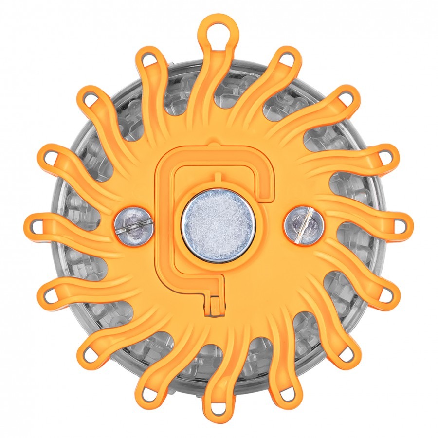 6 amberkleurige LED-flares met 9 lichtstanden, waaronder SOS-signaal en constant werklicht