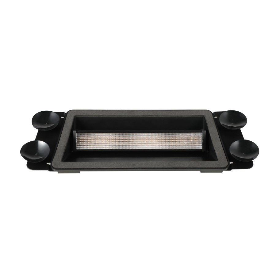 Deze dashboard flitser heeft 24 krachtige LEDs waarmee u een duidelijk flitssignaal geeft. De LEDs geven blauw licht, waardoor u goed herkenbaar bent op de weg. U kiest uit 3 patronen, en sluit de flitser gemakkelijk aan op de sigarettenplug in uw auto of vrachtwagen. Daarnaast is de flitser eenvoudig te bevestigen aan de binnenkant van de voorruit dankzij de vier grote zuignappen. De flitser is R10 en R65 gecertificeerd, en mag daardoor gewoon op de openbare weg gebruikt worden. Verder kunt u de zuignappen ook van de flitser losmaken en de meegeleverde plakstrip bevestigen, waardoor de flitser ook aan het achterraam van uw voertuig bevestigd kan worden. De flitser is 332mm breed.