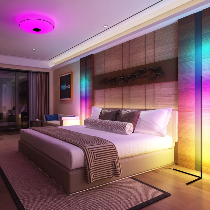 Deze digitale hoeklamp is dé oplossing om een sfeer naar wens te creëren. De ambient hoeklamp beschikt over de mogelijkheid om RGB licht te produceren, wat inhoudt dat u vrijwel elke kleur licht kunt kiezen en zo het gewenste effect mogelijk kan maken. Daarnaast kunt u met deze lamp ook voor koud en warm wit licht kiezen. Met de meegeleverde afstandsbediening kunt u de lamp ook dimmen, dus dat kunt u ook naar voorkeur aanpassen. De lamp is 140cm hoog en heeft een witte kleur.