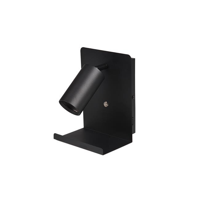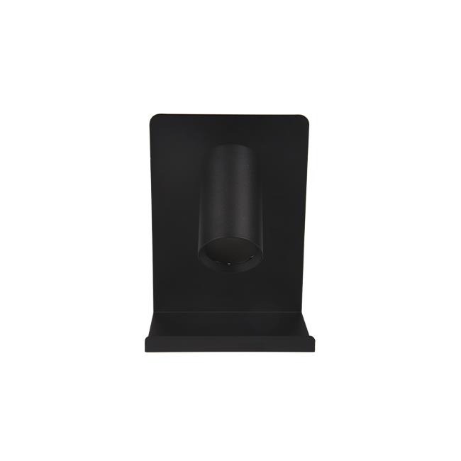 Met deze leeslamp kunt u weer aangenaam in bed uw favoriete boek, tijdschrift, krant, etc. lezen. De lamp heeft een diameter van 55mm, en beschikt over een GU10 fitting (lamp niet meegeleverd). Dankzij het strak afgewerkte ontwerp past de leeslamp in vrijwel elke slaapkamer, en door de grote muurplaat is lamp eenvoudig te bevestigen en aan te sluiten. Verder kan de lamp rondgedraaid worden, en tot 90 graden in verticale positie worden versteld. Zo heeft u altijd genoeg licht, en kunt u op comfortabele wijze lezen! Daarnaast is de lamp voorzien van een handig bakje, waar u eventueel uw telefoon, boekenlegger of andere benodigdheden op kunt leggen. De lamp kan gewoon aangesloten worden op 230V. De lamp is zwart van kleur, en gemaakt van aluminium en staal.
