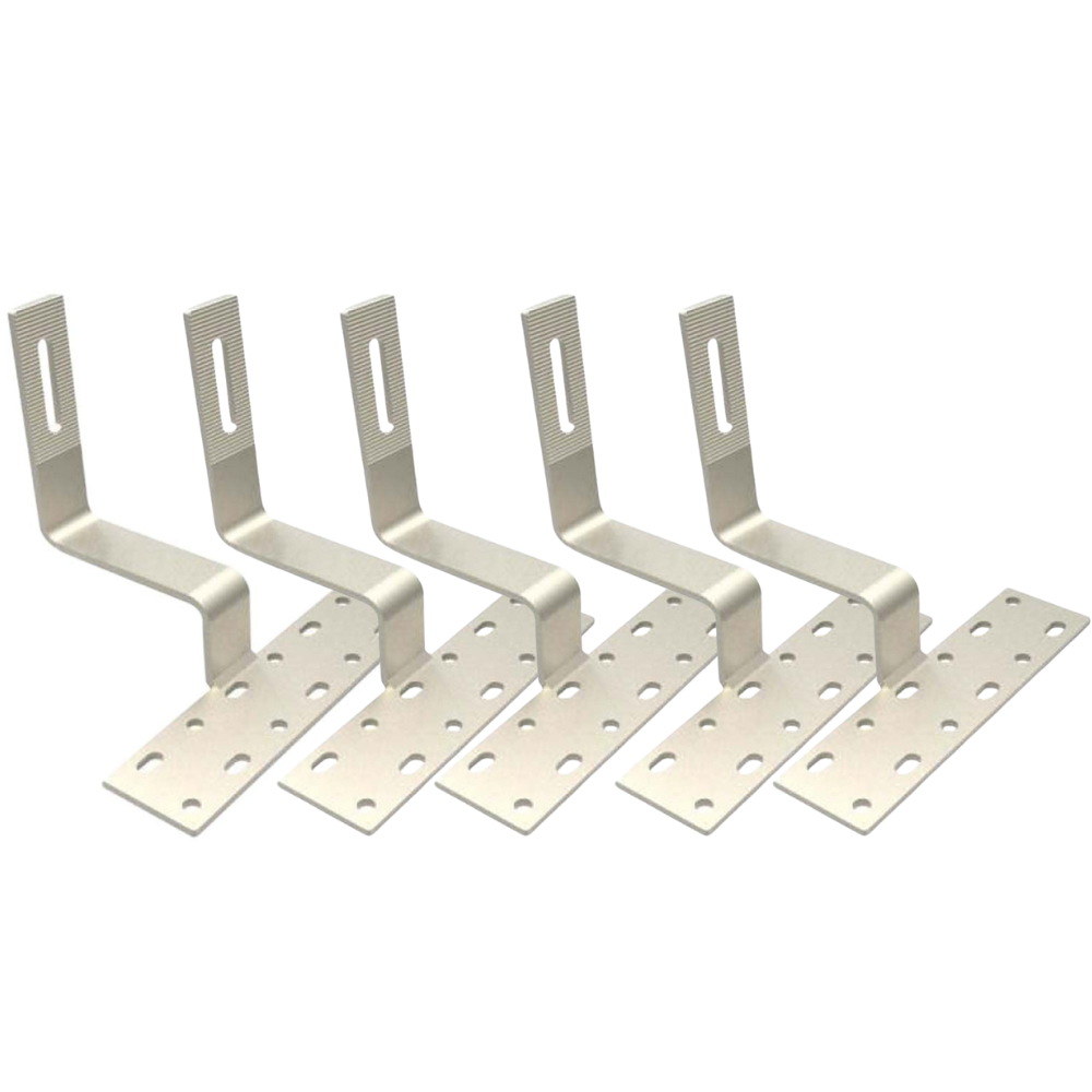 Deze sterke dakhaak van roestvrij staal wordt gebruikt om zonnepanelen stevig te monteren op daken. De haak is voorzien van 12 montagegaten, waarmee u de haak stevig kunt vastzetten onder de dakpannen. Op de andere montageplaat is genoeg ruimte gemaakt om een rail te monteren. Hierdoor maakt u eenvoudig een zeer degelijke en stevige constructie voor uw zonnepanelen. De montagegaten zijn 7.6mm en 7.6 x 13mm groot, wat genoeg ruimte geeft voor montage. De uitsparing voor de rail is 9 x 50mm.
